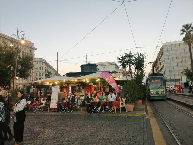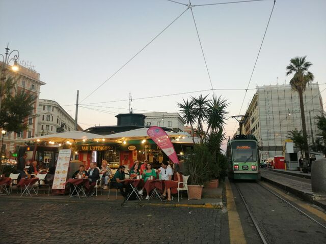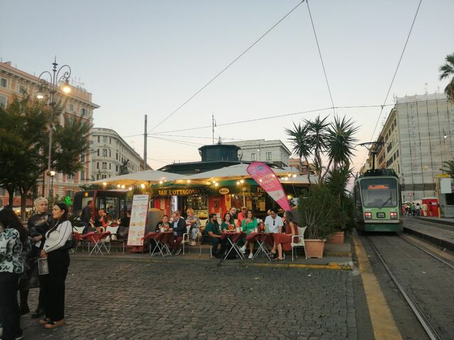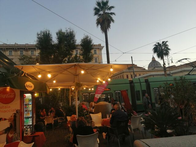 Il Bar l'Ottagono a San Pietro offre un'atmosfera accogliente e rilassante, ideale per una pausa durante la visita ai monumenti o per un incontro informale con gli amici. Il design del chiosco è elegante ma informale, con tavoli all'aperto e ombrelloni per godere appieno dell'atmosfera romana.